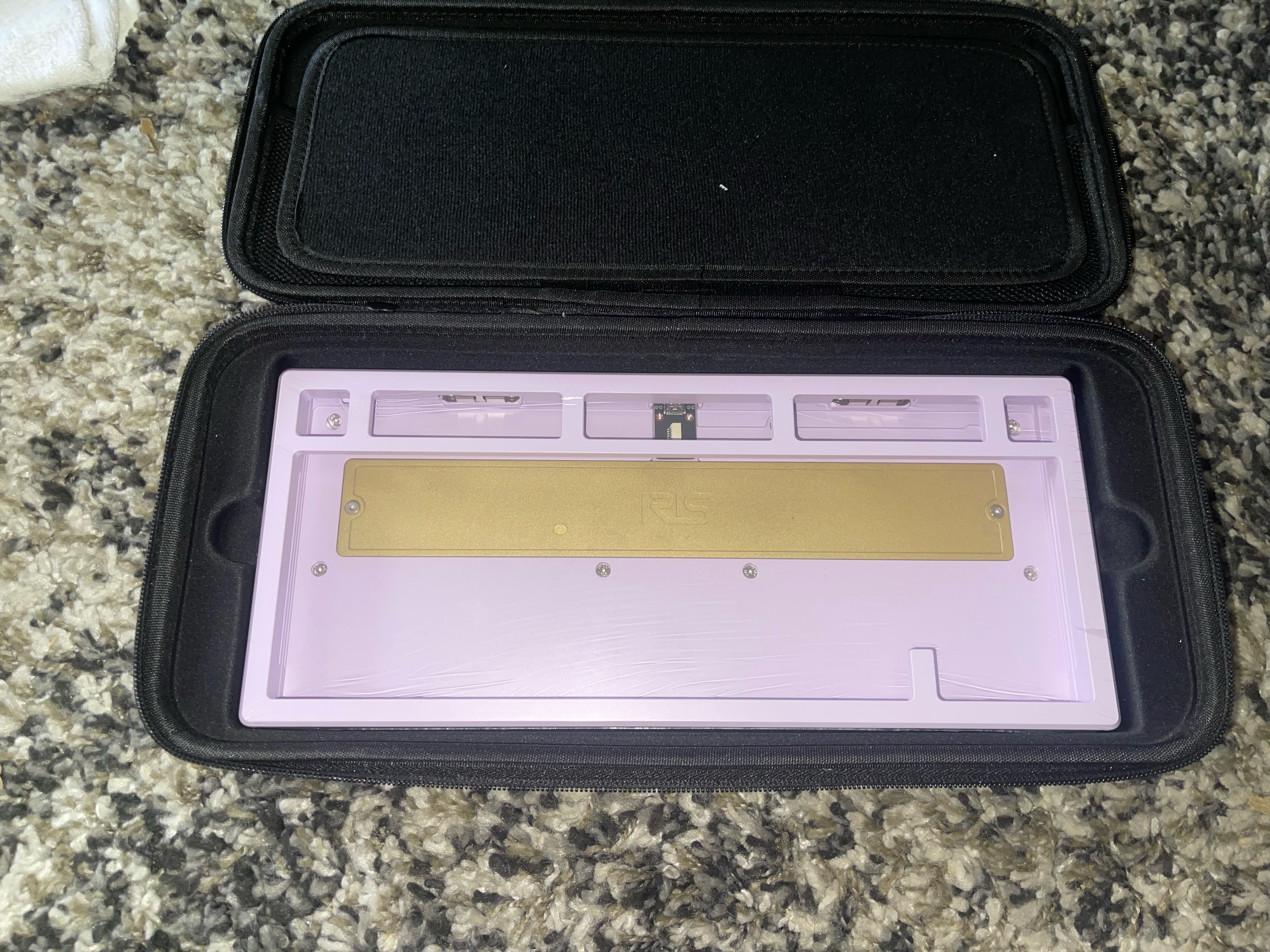 Lilac Jris 75, comes with POM and Alu plates, nob kit with silver PVD snowflake nob, and PVD silver LED light sign kit. Brand new in box (still in plastic wrap). PVD silver back weight and brass internal weight. Comes with everything in the box, cable and screw driver kit. Also included a PVD back plate protector (keep that mirror finish in mint condition).