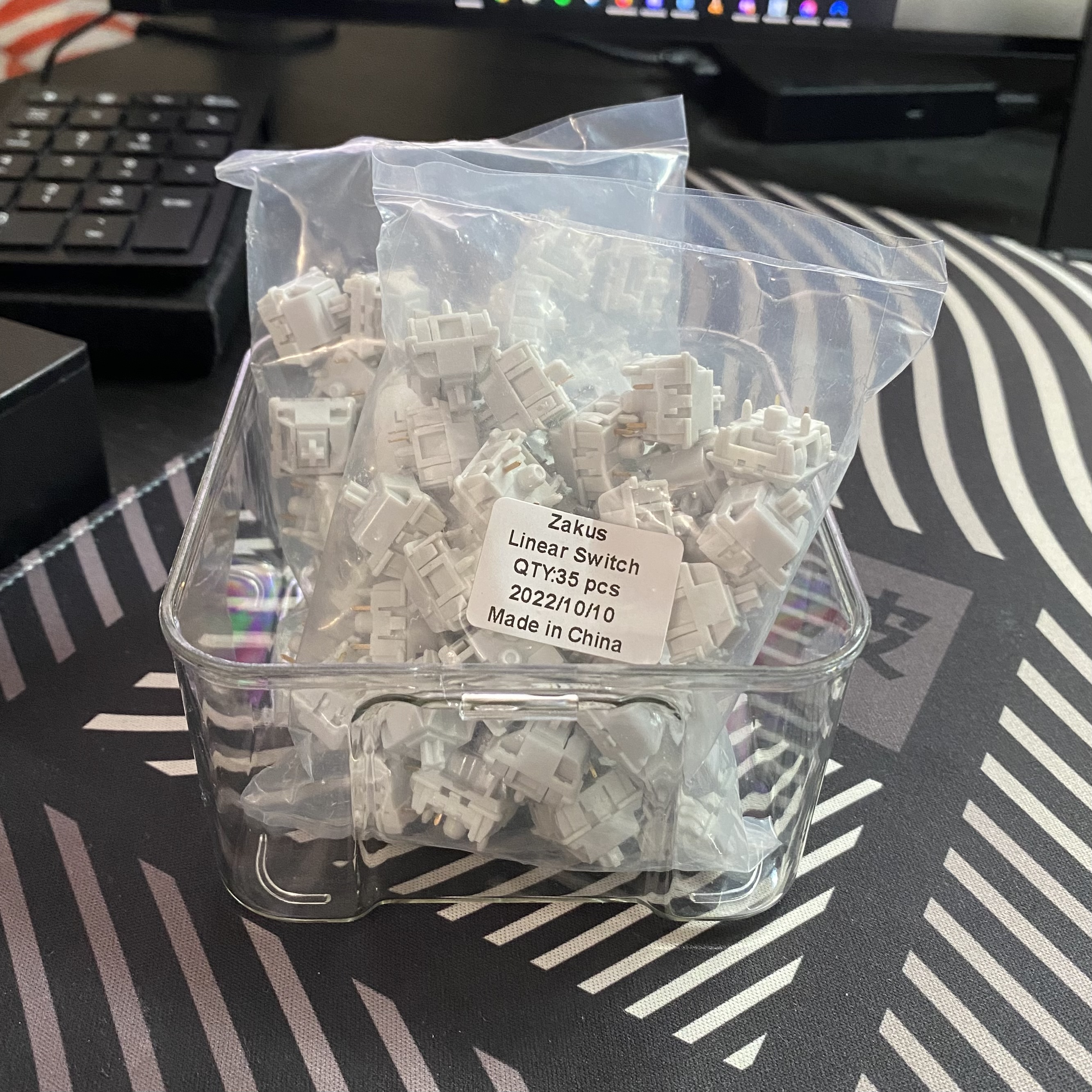 Brand new Zaku Linear switches in original packaging from Bolsa supply, never opened, used or mounted. Product will come in original plastic bags, not the switch container/box.